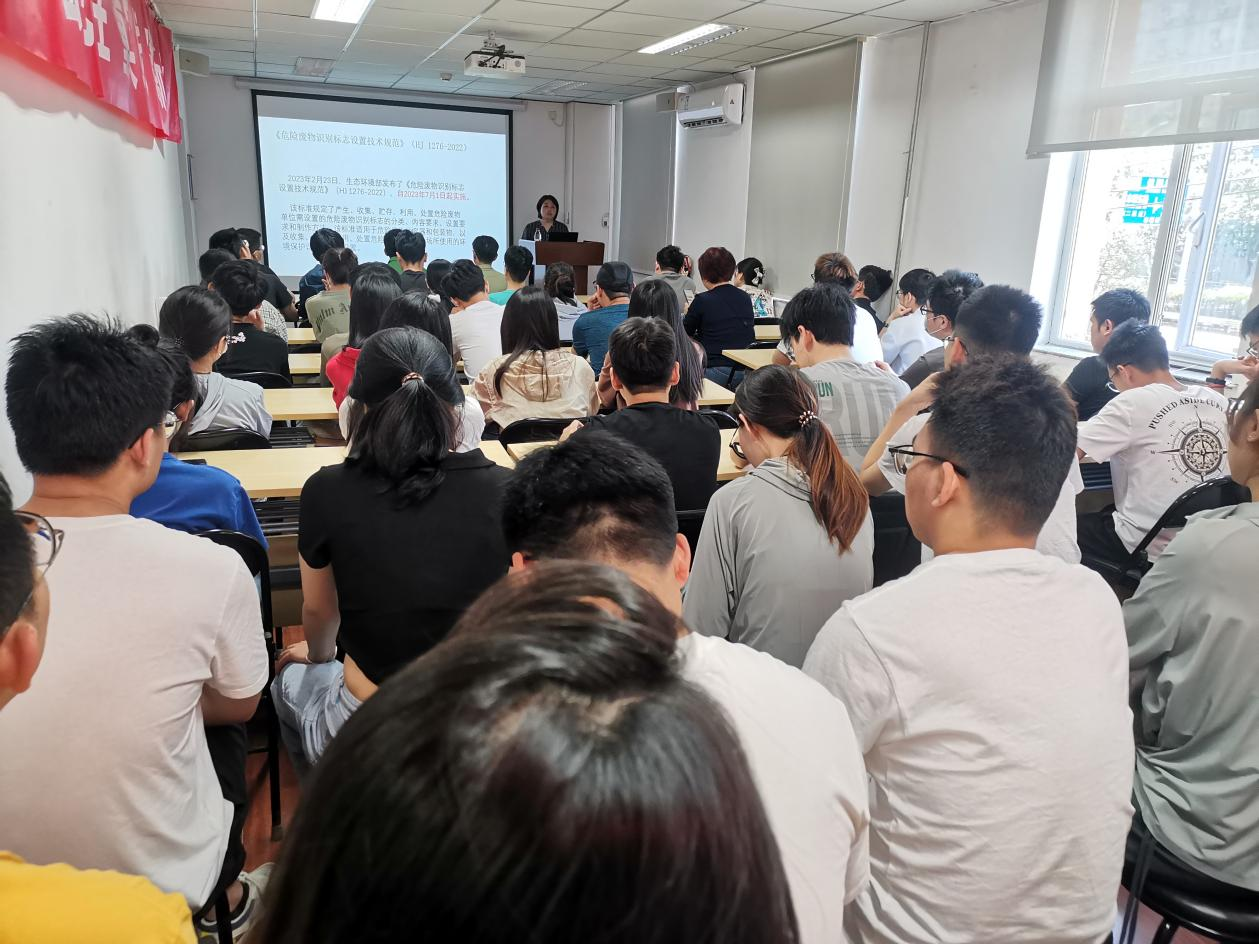学院首先邀请北京鼎元汇丰环保公司专家张敏就将于今年7月1日起施行的《危险废物识别标志设置技术规范》进行了解读培训。她首先解释了新规范修订的内容、原因和意义,并重点讲解了新规范中与学院实验室关系密切的“危险废物标签”使用规范及注意事项。